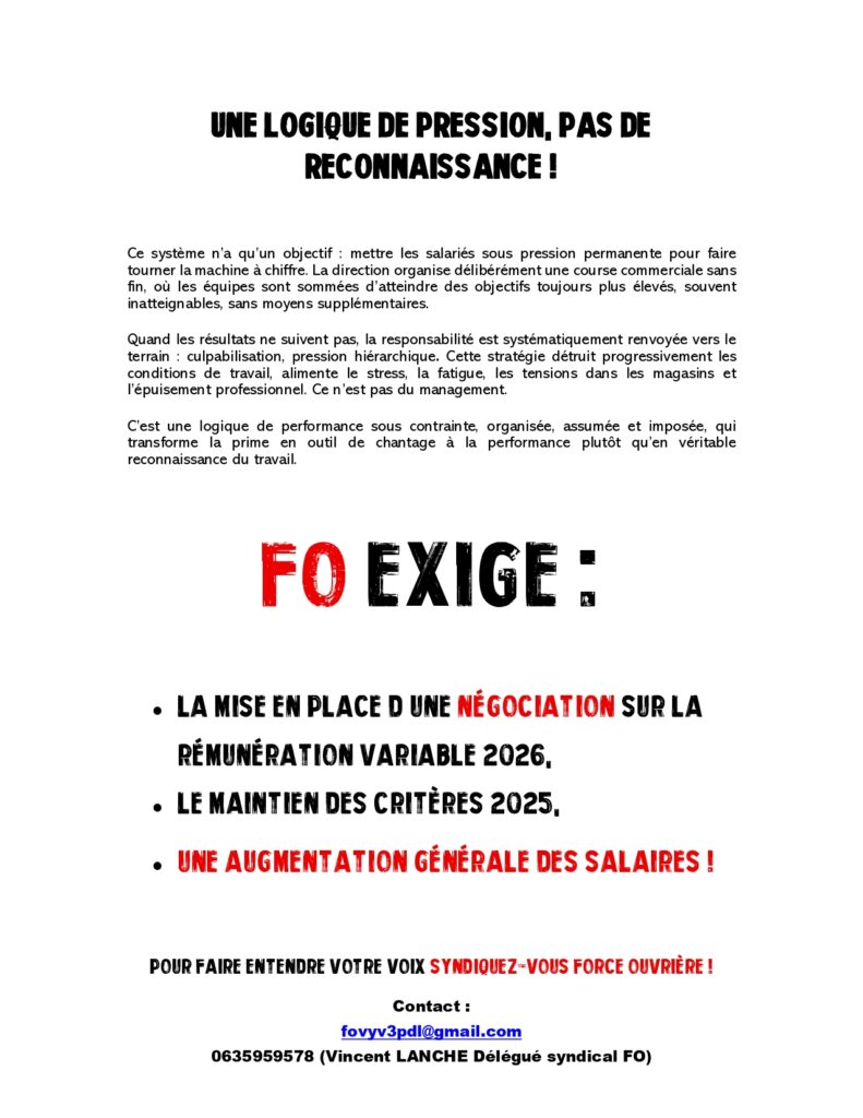 La direction a diffusé les différentes notes sur les rémunérations variables (primes).