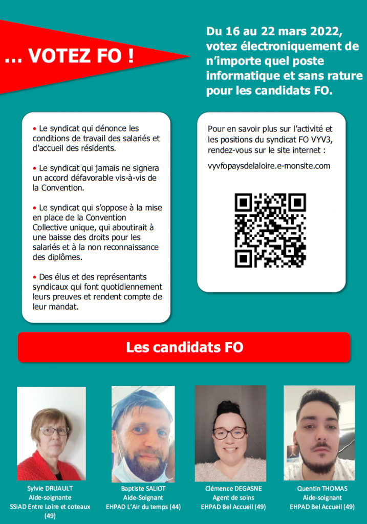 Du 16 au 22 mars se dérouleront les élections des représentants des salariés au conseil d’administration VYV3 PDL Personnes Agées. Pourquoi voter FO : mars 2, 2022 fovyv VYV3 PDL Pôle Personnes Agées 0